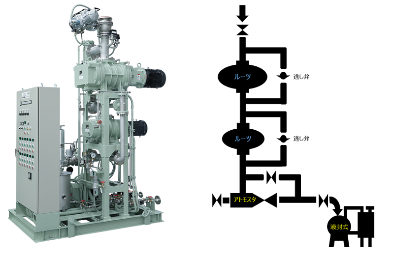 [図2:2段式ルーツ真空ポンプと液封式真空ポンプを組み合わせたPRL真空排気システム]