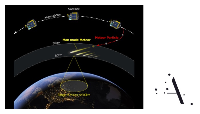 流星是指运行在星际空间的流星体(通常包括宇宙尘粒和固体块等空间物质), 在接近地球时由于受到地球引力的摄动而被地球吸引,从而进入地球大气层,并与大气摩擦燃烧所产生的光迹。株式会社ALE为了重现这一自然现象,制作出1cm左右大的流星粒子,并将其释放设备搭载在人造卫星上,通过尝试在宇宙空间中释放出流星粒子,以人工的方式重现流星这一自然现象,此过程为人造流星的基本运作方式。