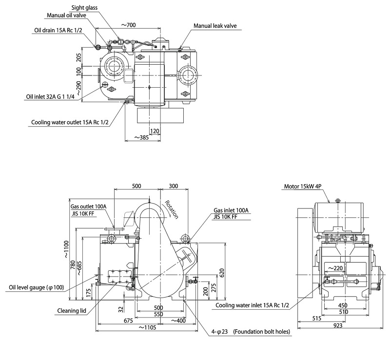 重量 (kg) 附带全封闭式风扇外置型电机 1500