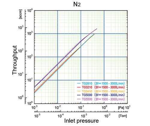 ※1:前级泵容量为3000L/min时的最大允许气体流量。