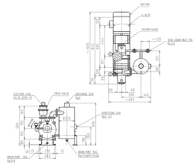 • 串联大气喷射器,实现低于密封液蒸汽压的极限压力