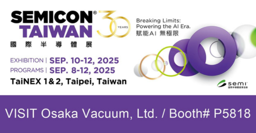 OSAKA VACUUM will have a booth at SEMICON TAIWAN 2025, which will be held in Taipei City, Taiwan, from September 10 to 12.