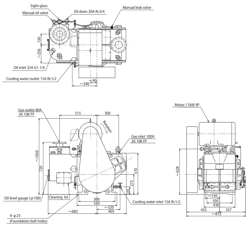 | Weight (kg) | With totally enclosed fan cooling motor | 780 |