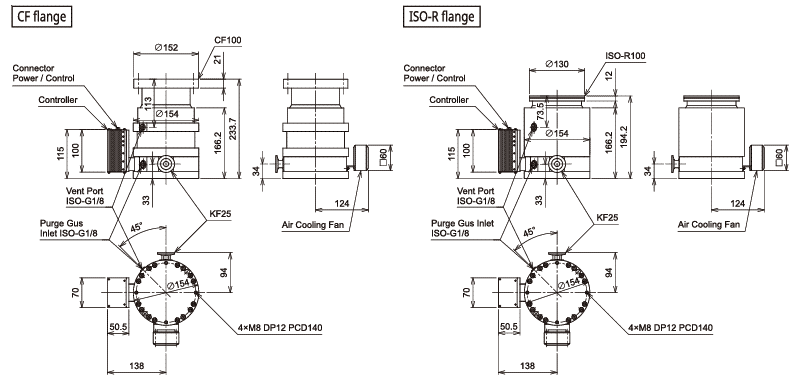 | Base pressure | Pa | <1×10⁻⁶ (ISO-R) / <5×10⁻⁷ (CF) | |