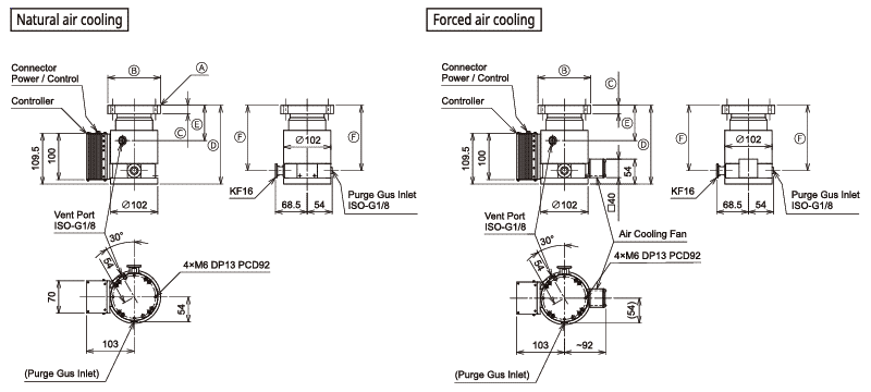 | Max. throughput ※1 | N₂ (sccm) | 10 (Natural air cooling) / 20 (Forced air cooling) | 10 (Natural air cooling) / 20 (Forced air cooling) |