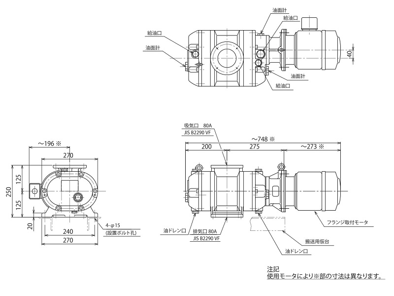 | 質量 (kg) | 全閉外扇屋内形モータ付 | 110 |
