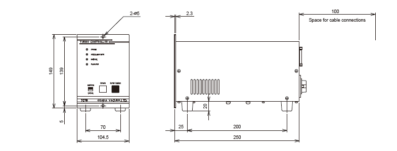 ※上記寸法図はTG240F(コントローラ一体型)の場合です。TG240F-20 はコントローラが別置きになります。