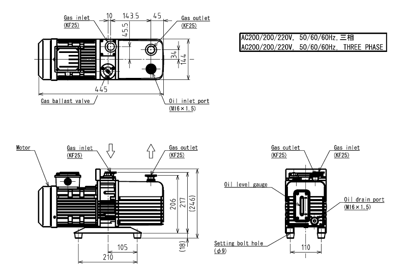 回転翼形 直結型油回転真空ポンプ(二段式)