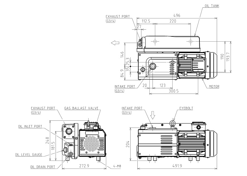 回転翼形 直結型油回転真空ポンプ(一段式)
