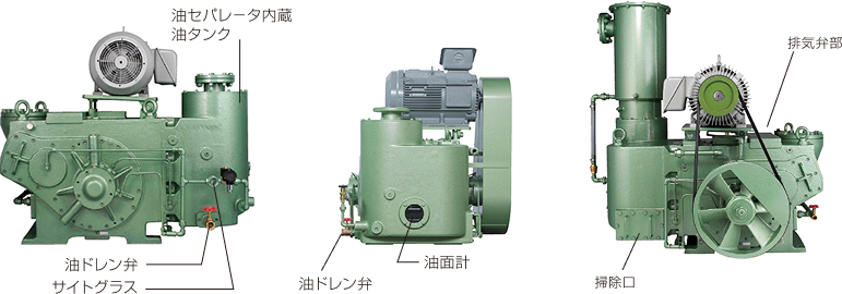 効率の良い油セパレータ → 油タンク内には効果的な油セパレータを内蔵、気体と一緒に排出された油を効率よく分離・回収可能